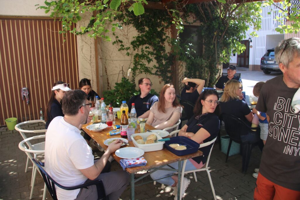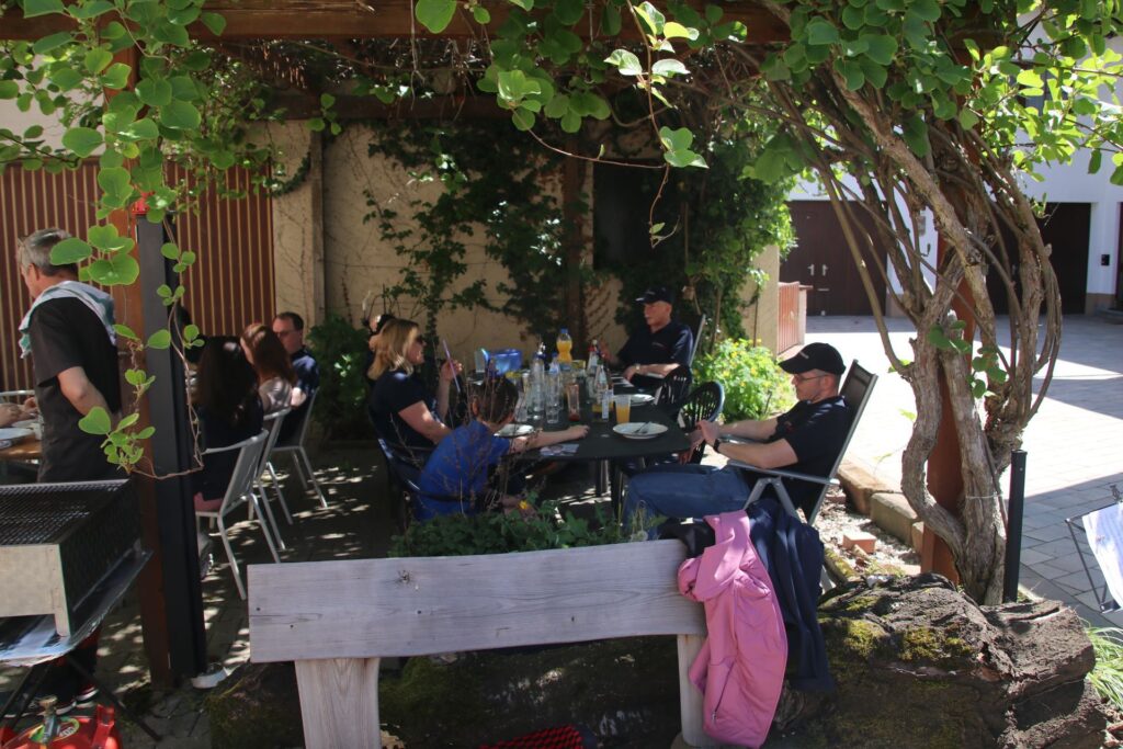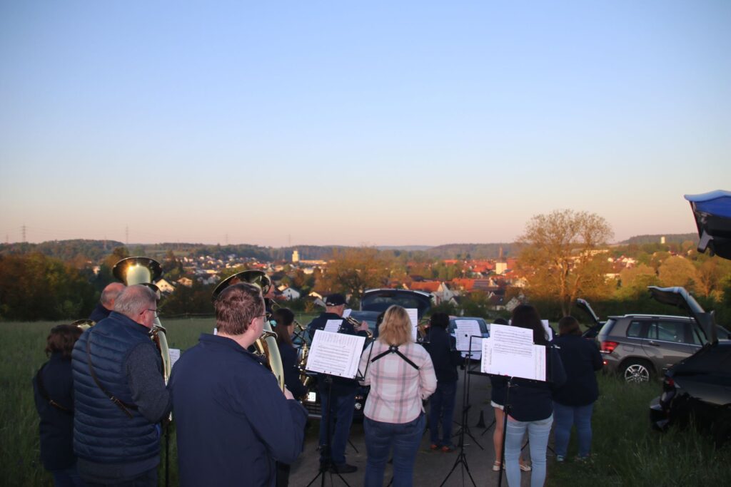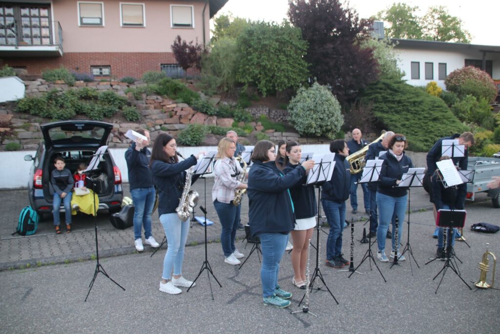 An insgesamt 11 Stationen in der gesamten Gemeinde Helmstadt-Bargen machten wir halt und unterhielten die Einwohner mit unserer Musik. An etlichen Stationen wurden wir herzlich empfangen und mit Speiß und Trank versorgt. Nachdem wir den etwas kühleren Morgen überstanden hatten und die Sonne sich heraus traute, konnten wir bei nahezu sommerlichen Temperaturen das Maiblasen fortsetzen. Nach mehr als vier fordernden Stunden Reise und Musik konnten wir das Ganze gemeinsam in geselliger Runde noch ausklingen lassen.